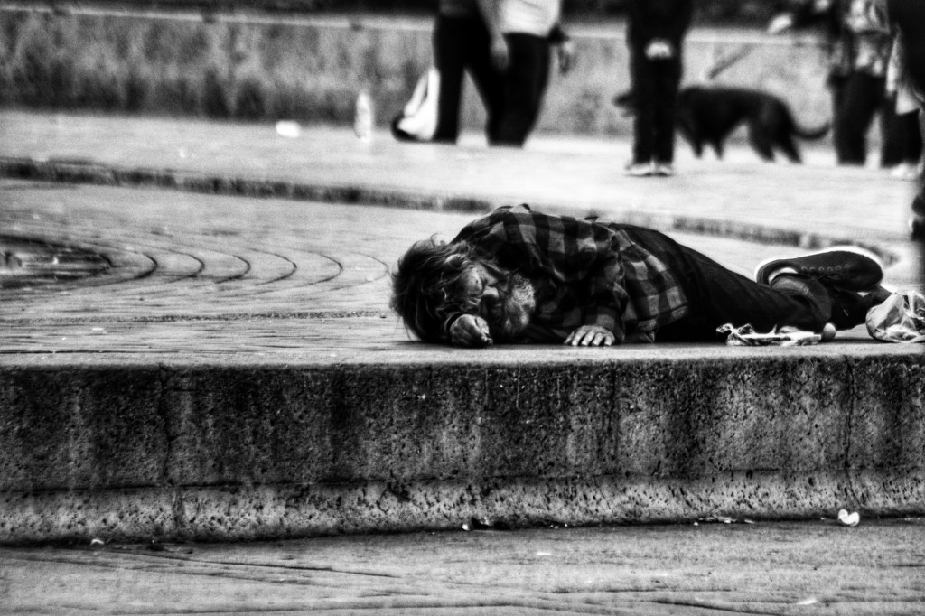 Later, I came across a homeless man taking a nap. The homeless situation in San Diego is noticeable, though less so in the park itself. This man was lying on the edge of a fountain while at least 75 first-graders played nearby. I don’t photograph kids without permission, but I’m comfortable photographing adults, especially when a picture tells a story. I’m still trying to figure out what story this one tells.