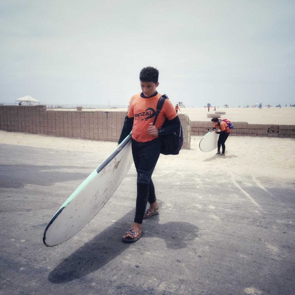 I do love one photo from today, but I cheated. It’s of my grandson returning from a morning of surfing. He’s not a stranger, and I intended it more for my photography journal. Still, he walked into my frame, so I’ll count it as a fishing example.
