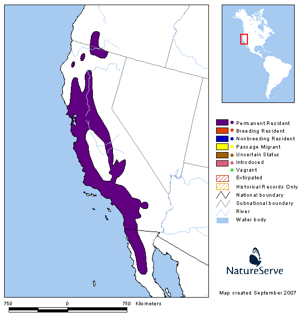 The Oak Titmouse is native to California and Oregon, and it’s occasionally seen in Baja California. These birds love oak woodlands but are also found in scrub, chaparral, and even backyards with the right trees. They’re homebodies, non-migratory and highly territorial, and they mate for life.