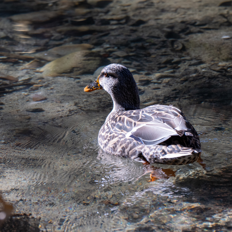 We ran into a few Mallards on the way to the feeders, but nothing else. When we arrived, the feeders were occupied by two Common Crows, a handful of Lesser Goldfinches, and even more Mallards. I waited a bit to see if anything more interesting would arrive, but nothing did, so we continued along the stream trail.